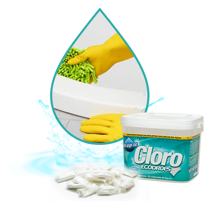 Esta creado para que al contacto con el agua sea cloro activado y elimine eficazmente todo tipo de microorganismo n superficies o manchas en textiles.