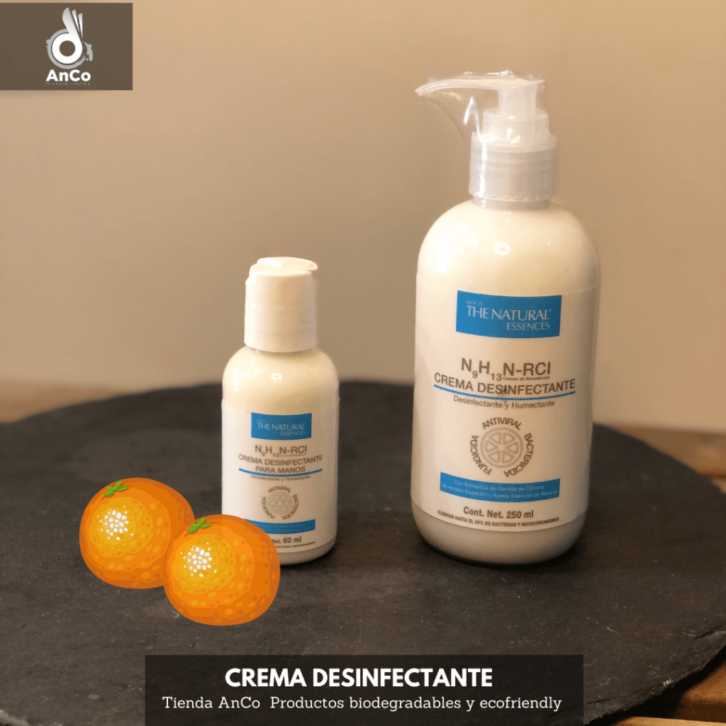 Crema para manos, humectante y desinfectante, rico aroma a cítricos.