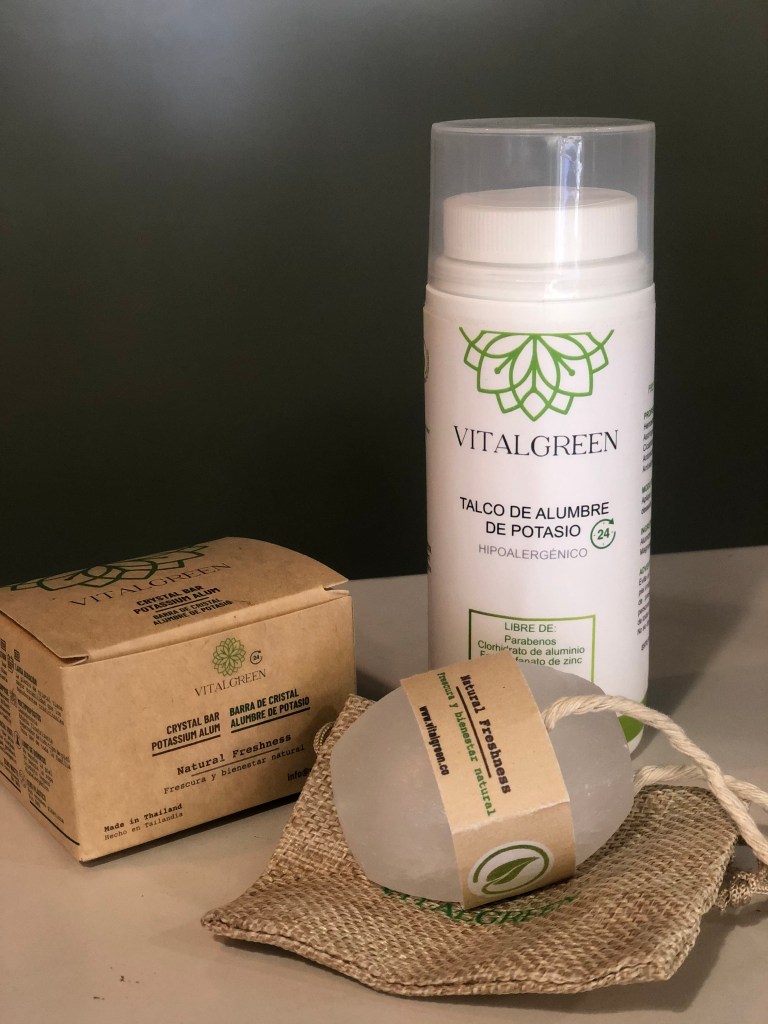 Como ingrediente principal el Alumbre de Potasio hay dos productos, talco para mal olor y desodorante.
