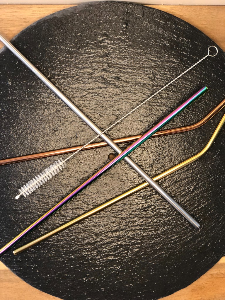 Popotes metálicos con cepillo para limpiarlos y usarlos cuando y donde quieras.
