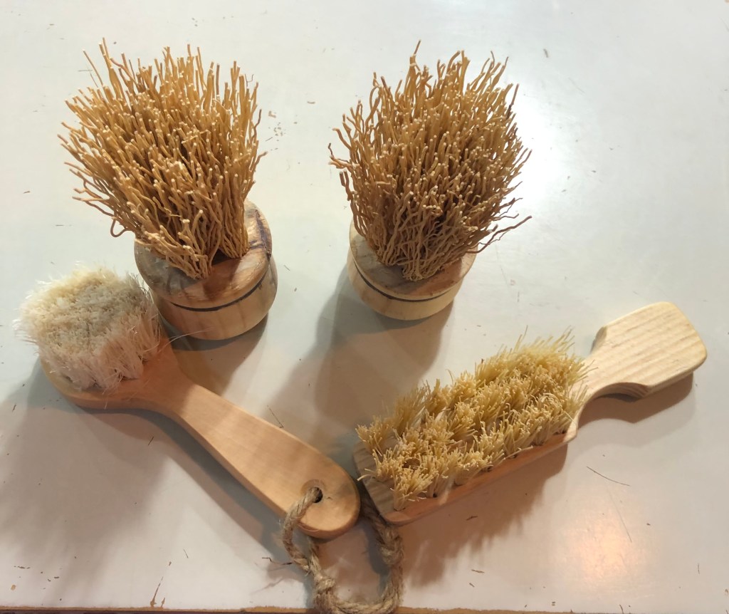 Distintos cepillo artesanales para diferentes usos como piene, para ollas, calzado, frutas, etc.