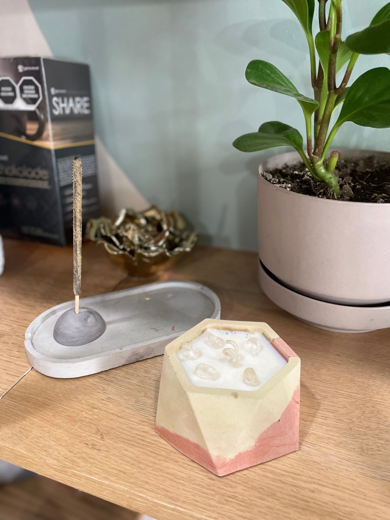 Diseños originales en concreto pintado para distintos usos como porta incienso, veladoras, pisa papeles, lego, arcos, calaveras, etc.